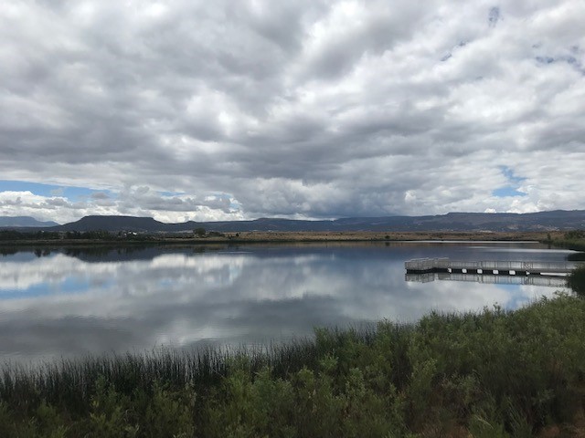 Trailheads for hiking are accessible from designated parking by the lake and the river walk.